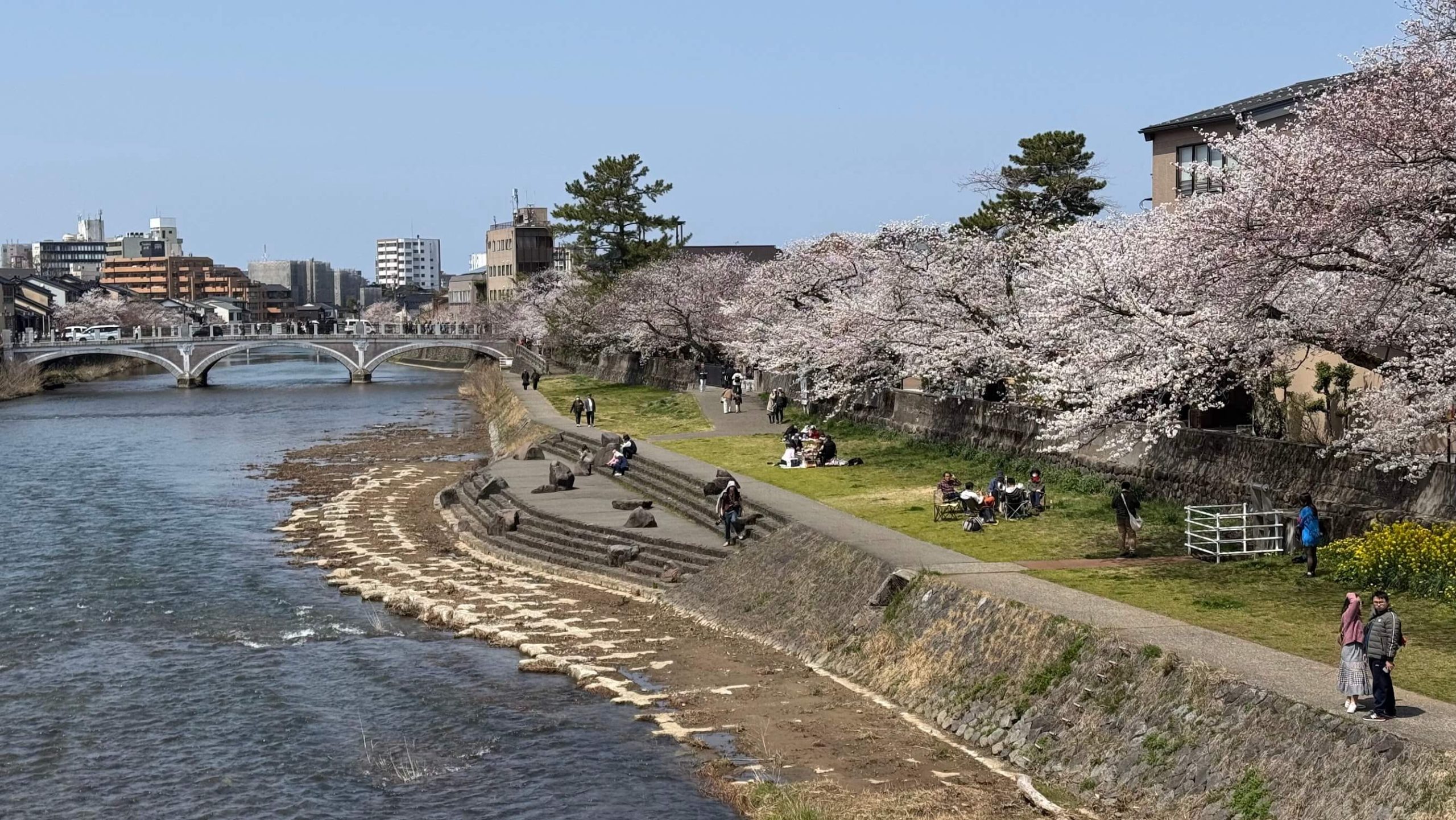 金泽遇上樱花季实属意外,自从上一次从关西跑到关东看展追樱花之后,我们就没再安排过赏樱之旅,没想到今年在金泽看到满开的樱花,挺漂亮的。